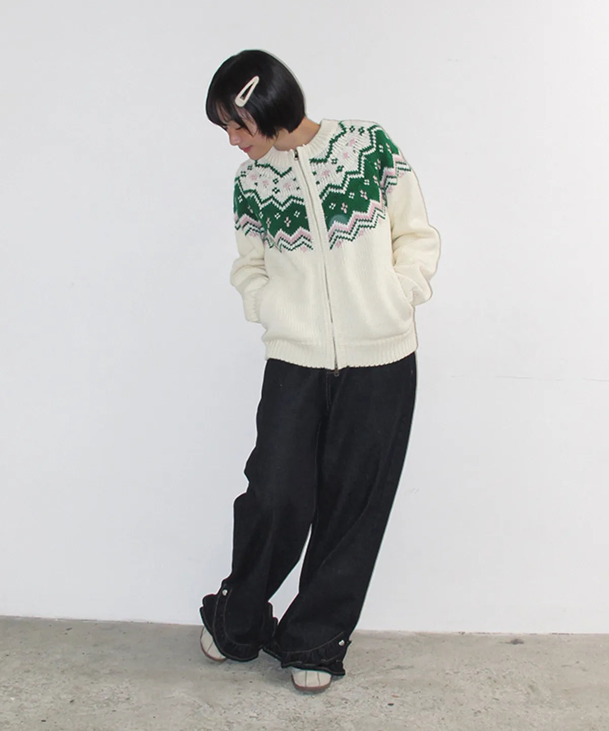 NORDIC FAIR ISLE COWICHAN KNIT ZIP UP IVORY