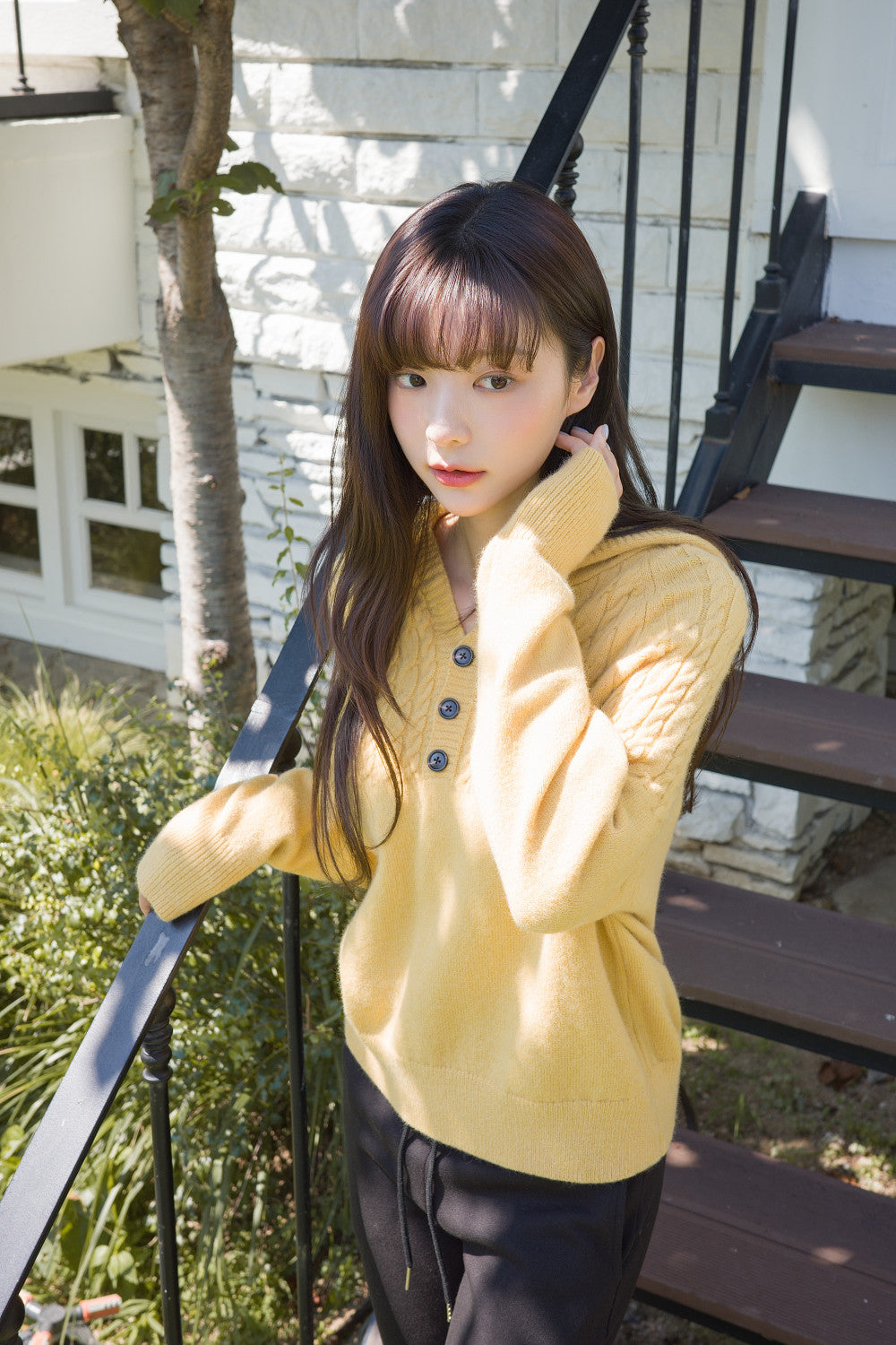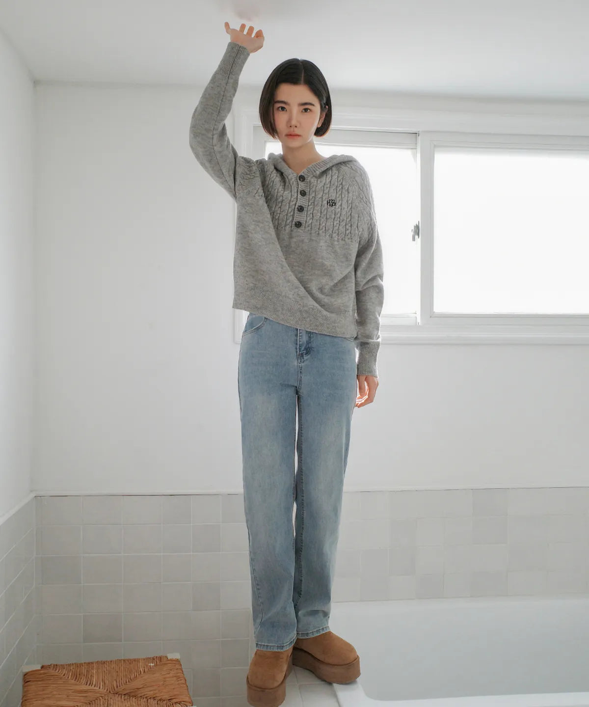 CABLE HALF OPEN HOOD KNIT - 4 COL