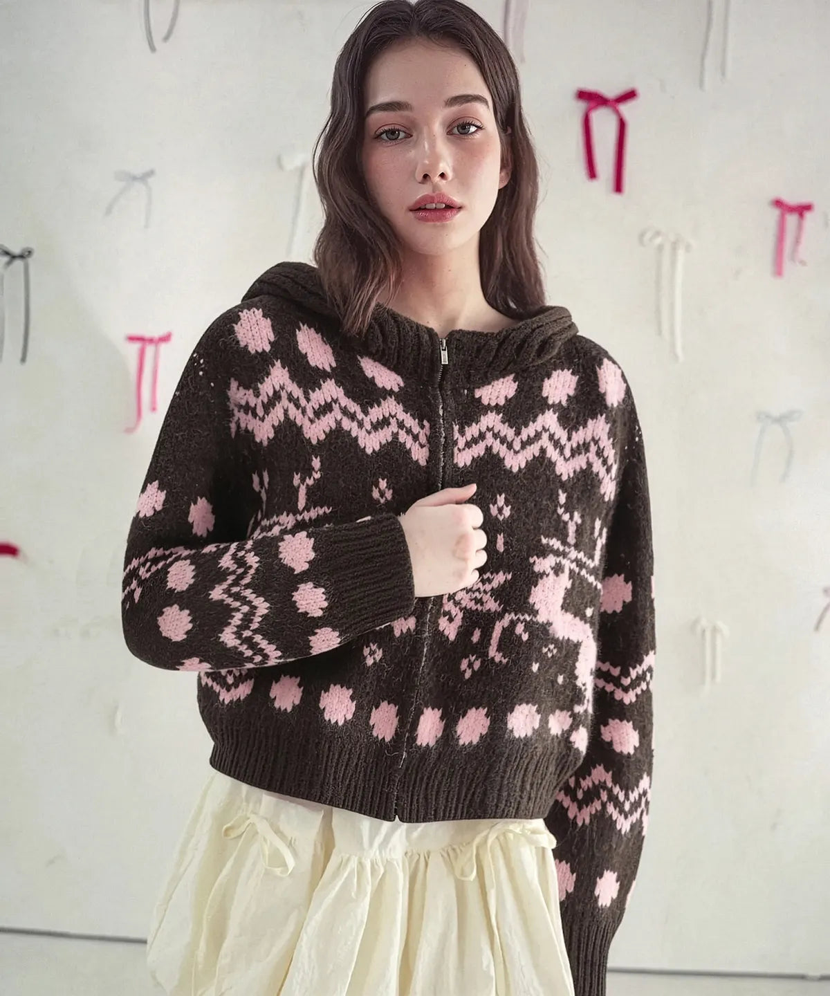 Reindeer Knit Hood Zip-up_3Colors