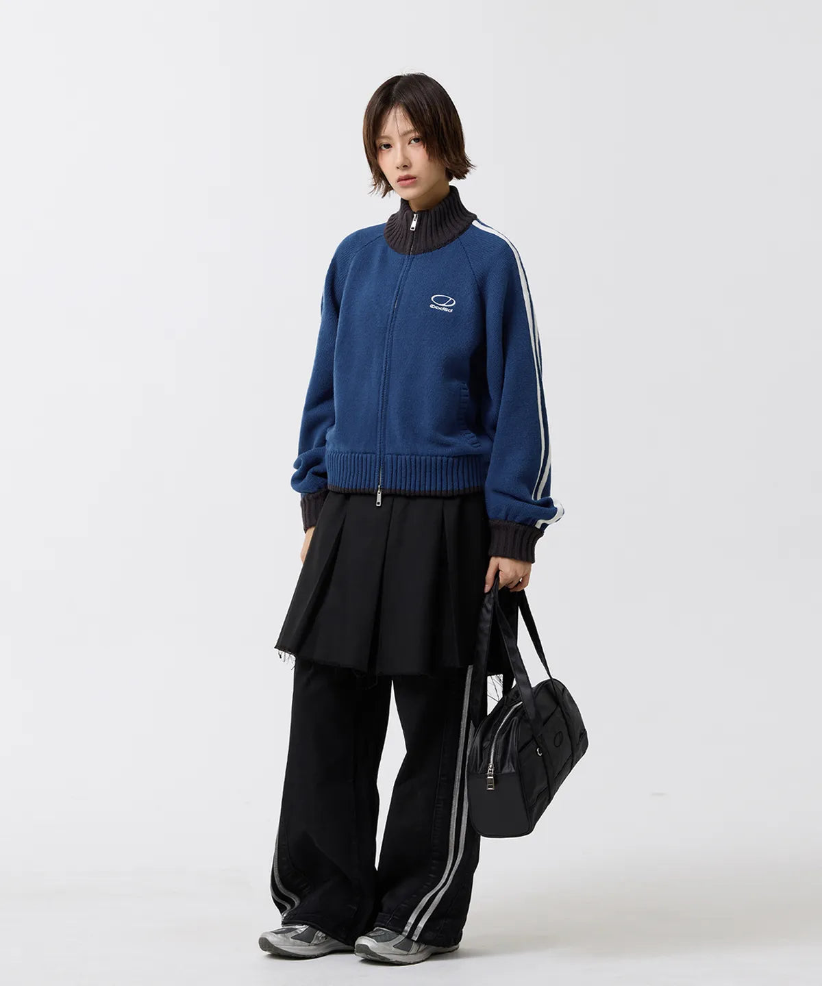 SPORTY TRACK SEMI-CROP KNIT ZIP-UP - BLUE