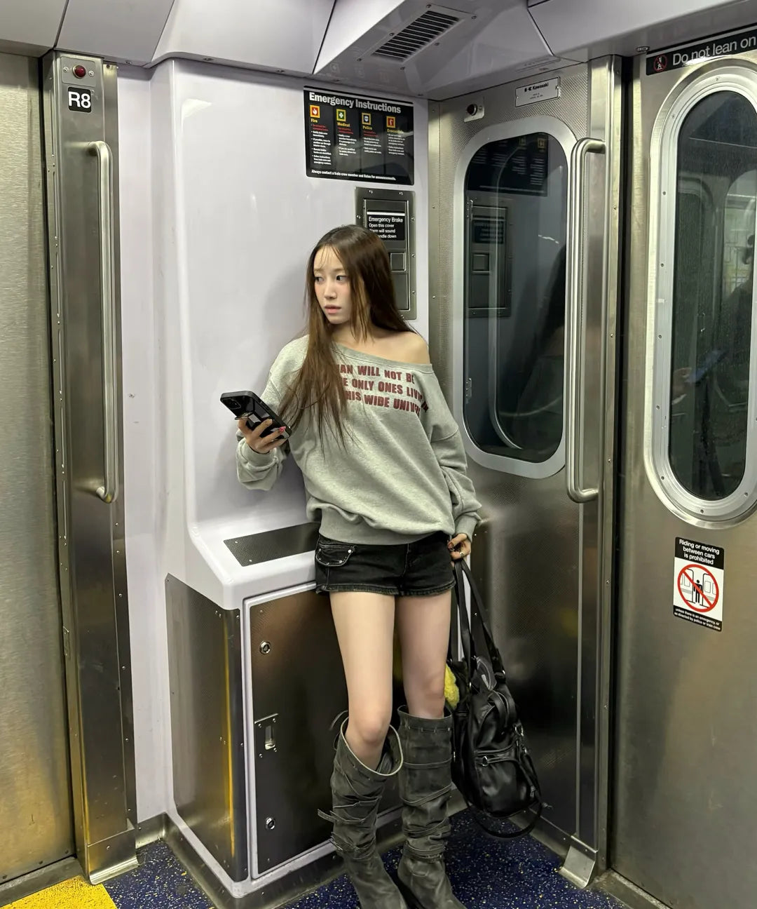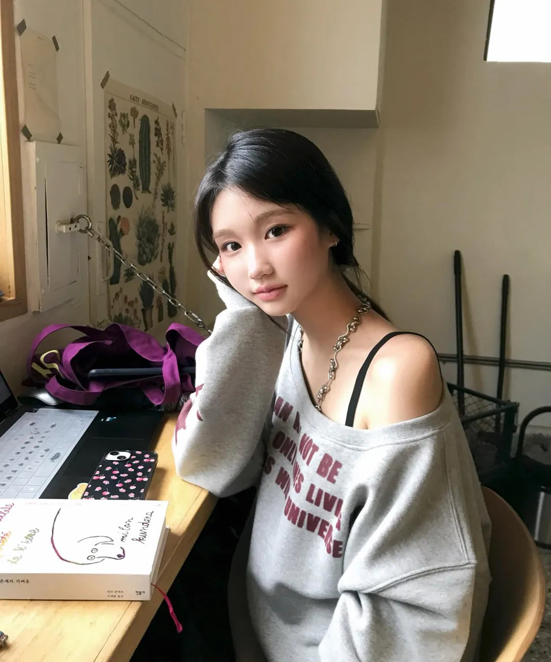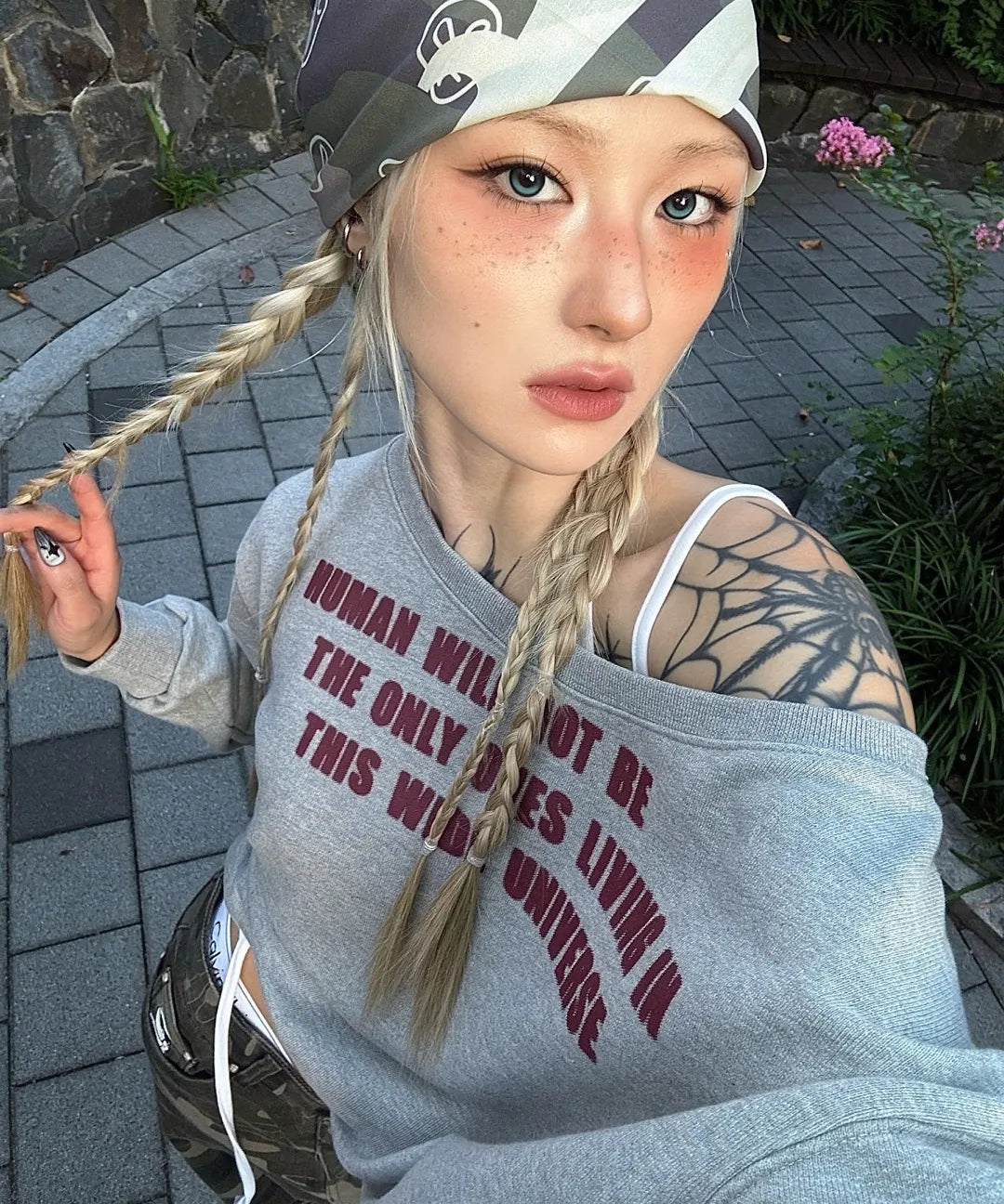 THREE STAR LETTERING OFF SHOULDER SWEATSHIRT - 2 colors