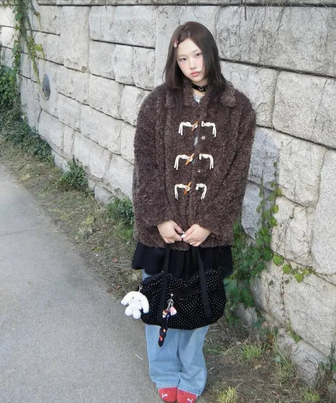 TOGGLE FUR COAT - 2 color